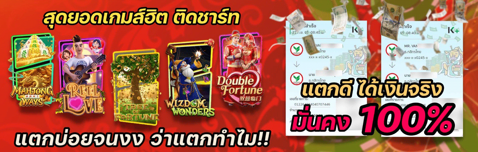 สิ่งที่โดดเด่นที่สุดคือระบบฝาก-ถอนที่ไม่มีขั้นต่ำ ทำให้เราสามารถเริ่มต้นเดิมพันได้ตามงบประมาณที่มี ไม่ว่าจะ 1 บาท 10 บาท หรือ 100 บาท ก็สามารถสนุกกับเกมต่างๆ ได้ ระบบทำธุรกรรมทางการเงินทำงานอัตโนมัติ 100% รวดเร็วทันใจ ใช้เวลาไม่เกิน 30 วินาที เงินก็เข้าบัญชีแล้ว