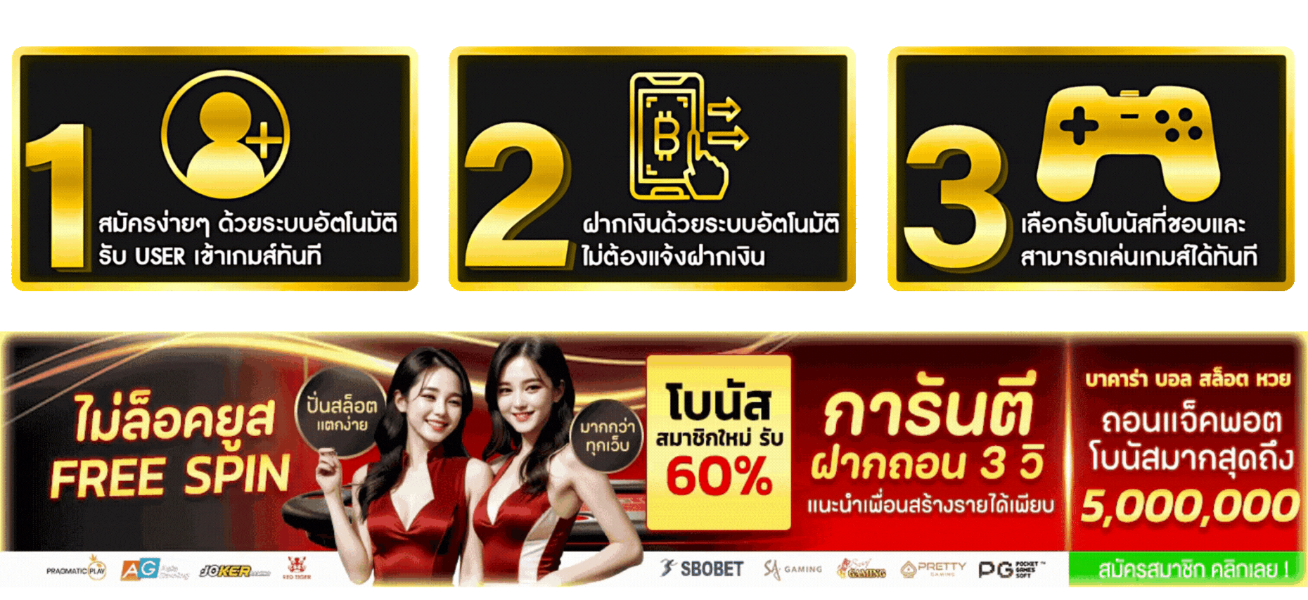 ตอบ : มีโบนัสต้อนรับสมาชิกใหม่ 100% โปรโมชั่นคืนยอดเสีย และกิจกรรมแจกเครดิตฟรีประจำสัปดาห์